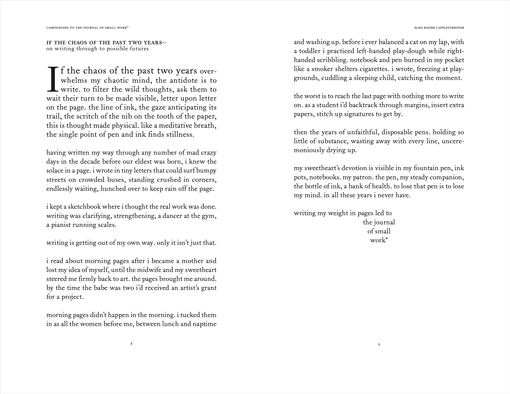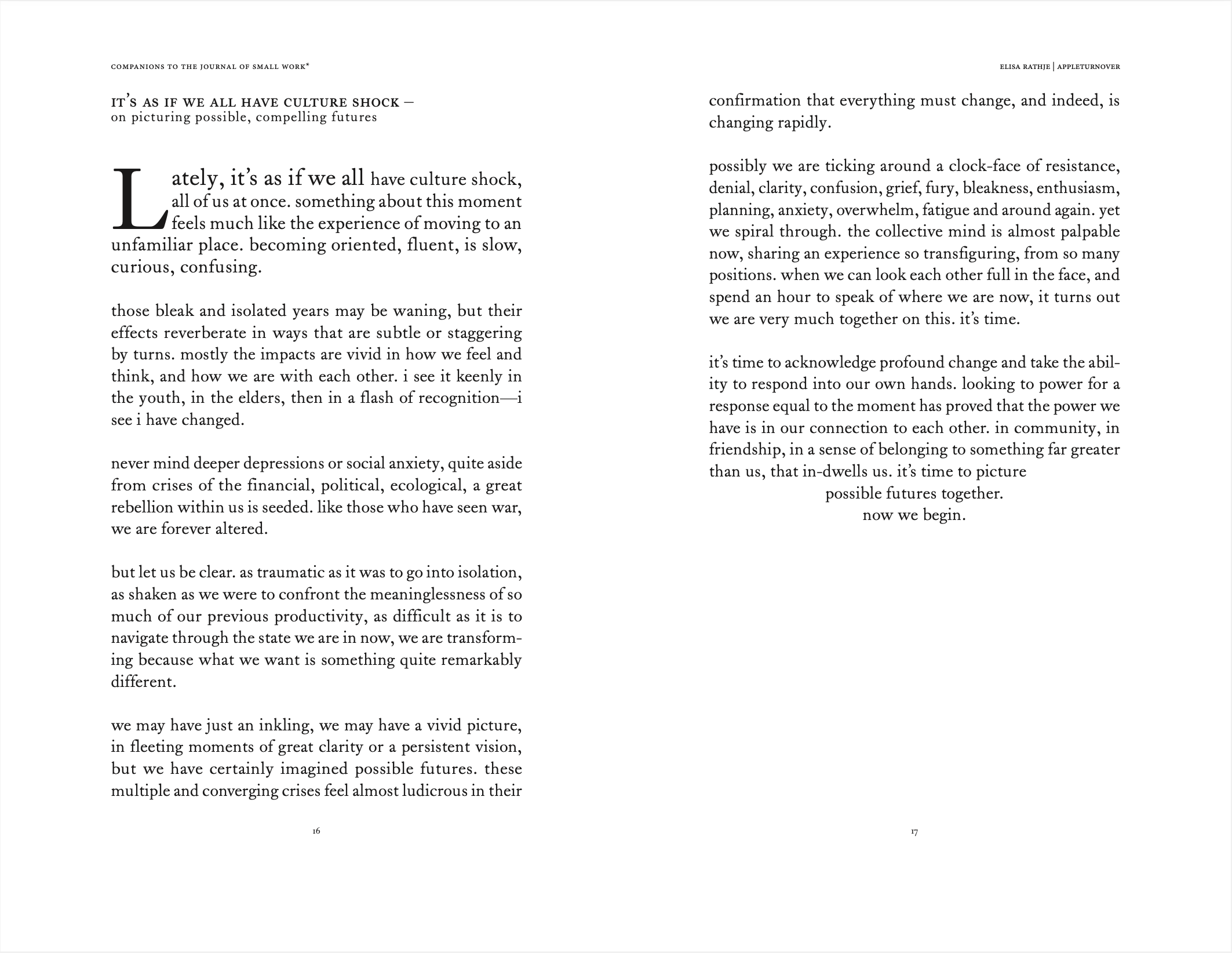 the journal of small work* is being written and released live to members, published serially in volumes.