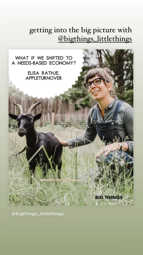 i had the great pleasure of getting more deeply into big picture and little, in an interview with sophie from big things, little things podcast, on shifting to a needs-based economy. you can listen to it here. perfect if you have a lot of darning or weeding to do!